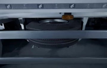 двустворчатая дверь, каждая створка на 4 петлях, 3-х уровневый резиновый уплотнитель; рама заднего проема из нержавеющей стали