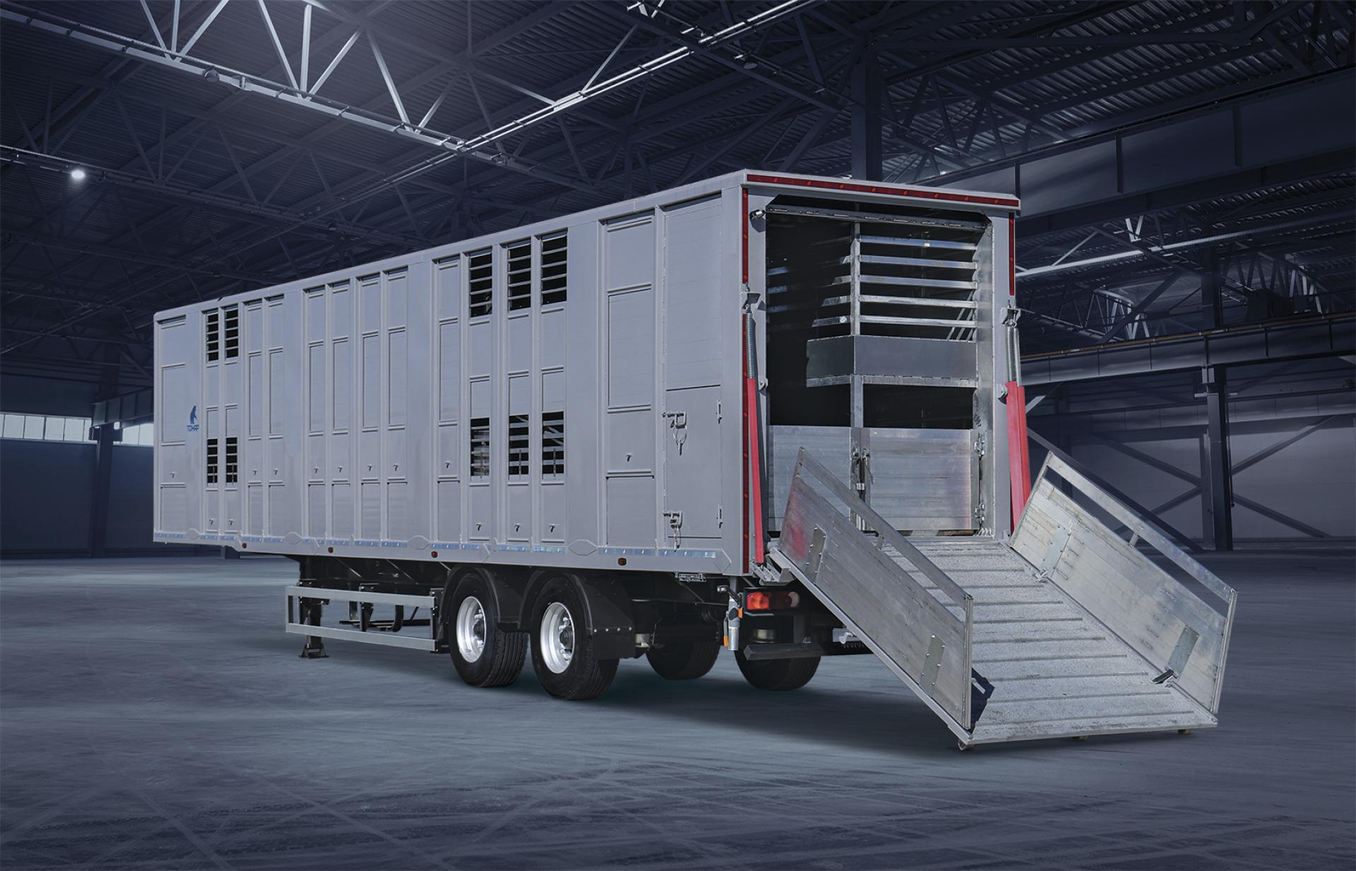 Полуприцеп для перевозки скота Тонар-9827 с гидролифтом